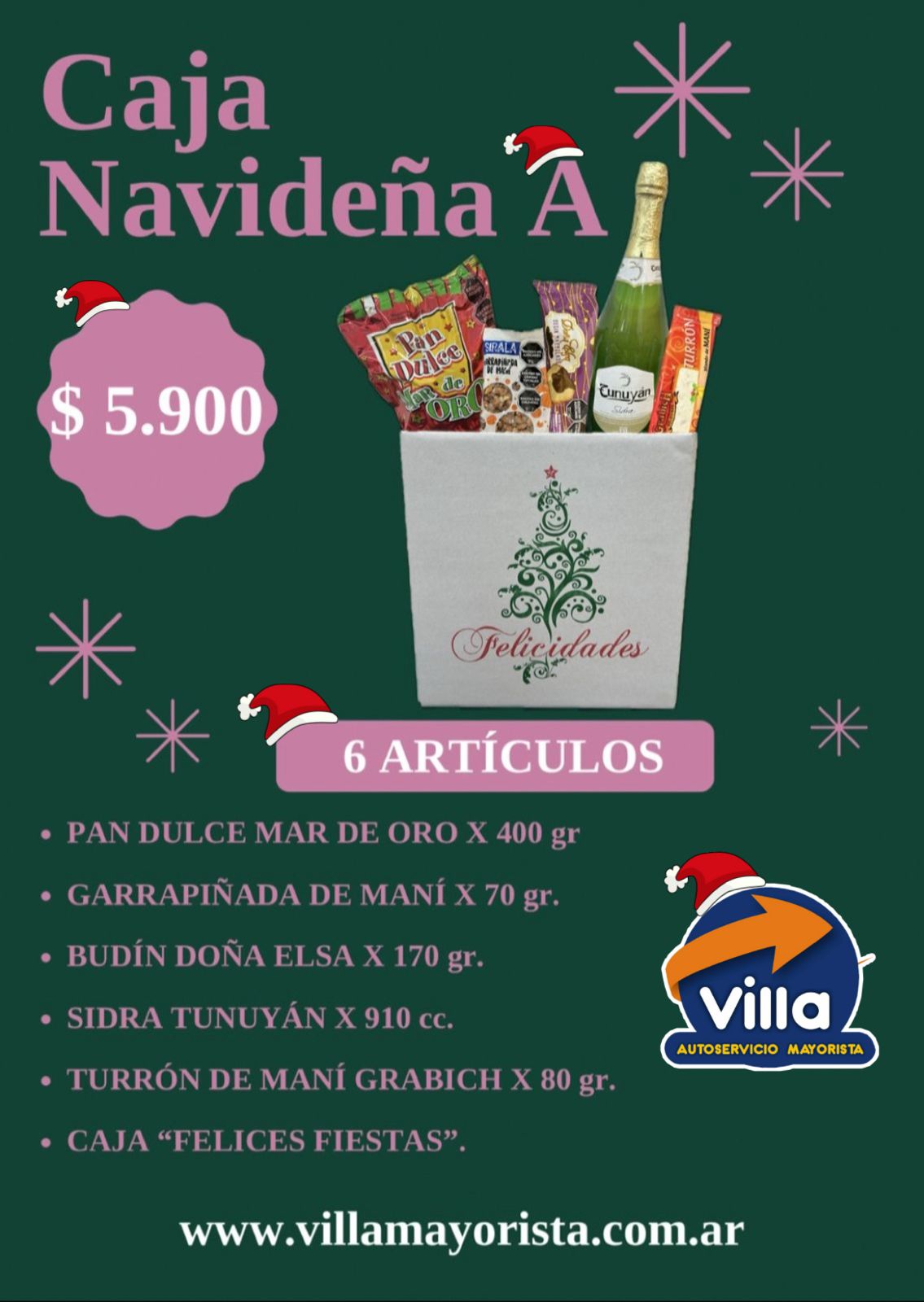 CAJA FELICES FIESTAS A - 6 PRODUCTOS VERDE